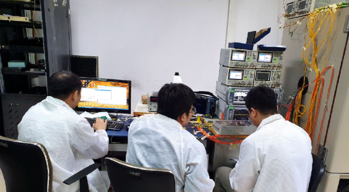 驗(yàn)證與測(cè)試工作也馬不停蹄。產(chǎn)品初樣焊裝完成后,光傳輸部員工絲毫沒(méi)有歇息,立刻緊鑼密鼓地投入到了調(diào)試和改進(jìn)工作中。從調(diào)試的第一天開(kāi)始,相關(guān)負(fù)責(zé)人就從未離開(kāi)第一線(xiàn),時(shí)時(shí)刻刻都在指揮協(xié)調(diào),甚至還與驗(yàn)證與測(cè)試員工一起設(shè)置溫箱、記錄數(shù)據(jù)、測(cè)試流程、改進(jìn)軟件,焊線(xiàn)、接線(xiàn)、調(diào)儀器……他們齊心協(xié)力堅(jiān)守崗位,周末無(wú)休,終于,在大家的共同努力下,國(guó)產(chǎn)化光轉(zhuǎn)換組件通過(guò)一次次評(píng)審,開(kāi)始為用戶(hù)供貨!
