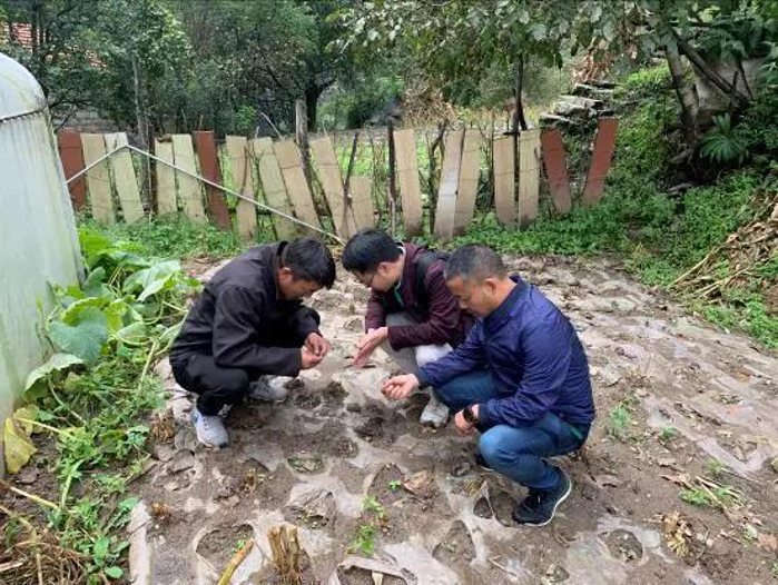 在大石凼村的種植試驗(yàn)大棚里,我和石高讓木初、俄瑪頭等村民一起勞作