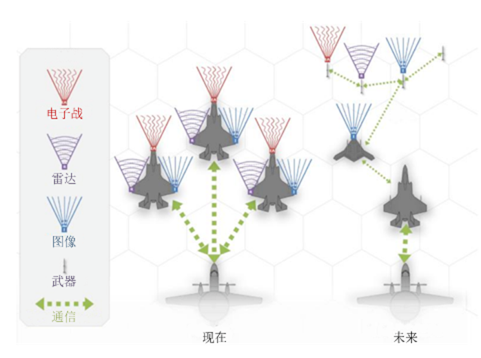 2014年,DARPA提出“分布式戰(zhàn)場管理”(DBM)項目。項目背景是未來的對抗性空域,協(xié)同作戰(zhàn)的飛機(jī)可能需要限制通信以免被對手發(fā)現(xiàn),或者會被對方干擾而無法交換信息,這將嚴(yán)重影響有人/無人編隊作戰(zhàn)能力,為此,DBM項目的目標(biāo)是使作戰(zhàn)編隊即使在受到干擾的情況下也能繼續(xù)執(zhí)行任務(wù)。